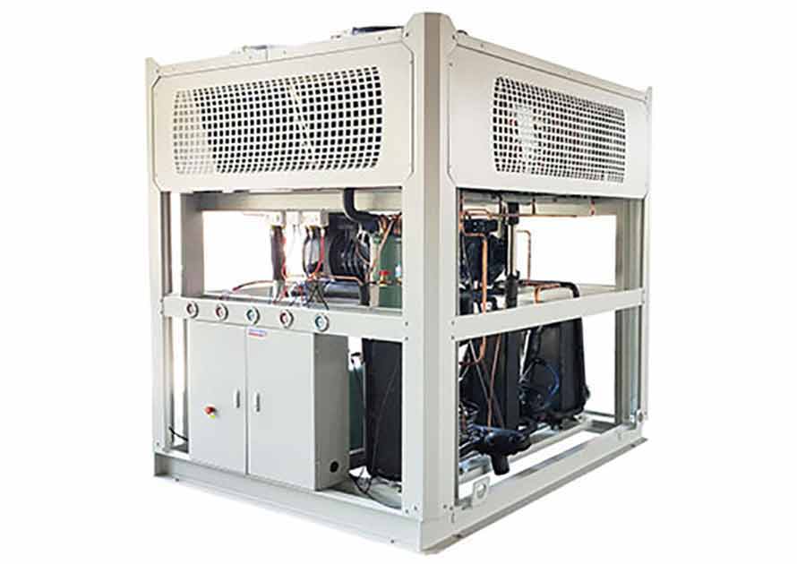 風冷低溫復疊式制冷機組是通過風扇以空氣為冷凝方式的超低控溫設備。